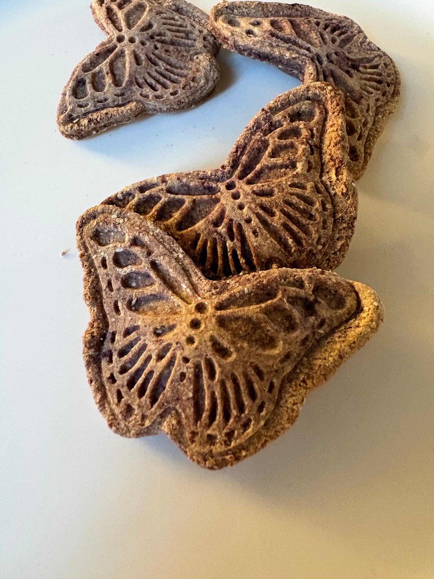 Bullie Bakerie was started after Leo had some tummy trouble from store bought treats. As a result, I decided to make some of my own. I am a trained pastry chef who loves baking so I was excited to try something new. The following week, I made another flavor, then another, then another and Bullie Bakerie was born! Our treats are made with all-natural ingredients, wheat free and Leo approved. We suggest storing the treats in the refrigerator to prolong their shelf life.
